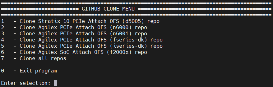 - The script ofs-clone_repositories.sh has different platforms to choose from the menu to clone as shown in the figure 2-3.