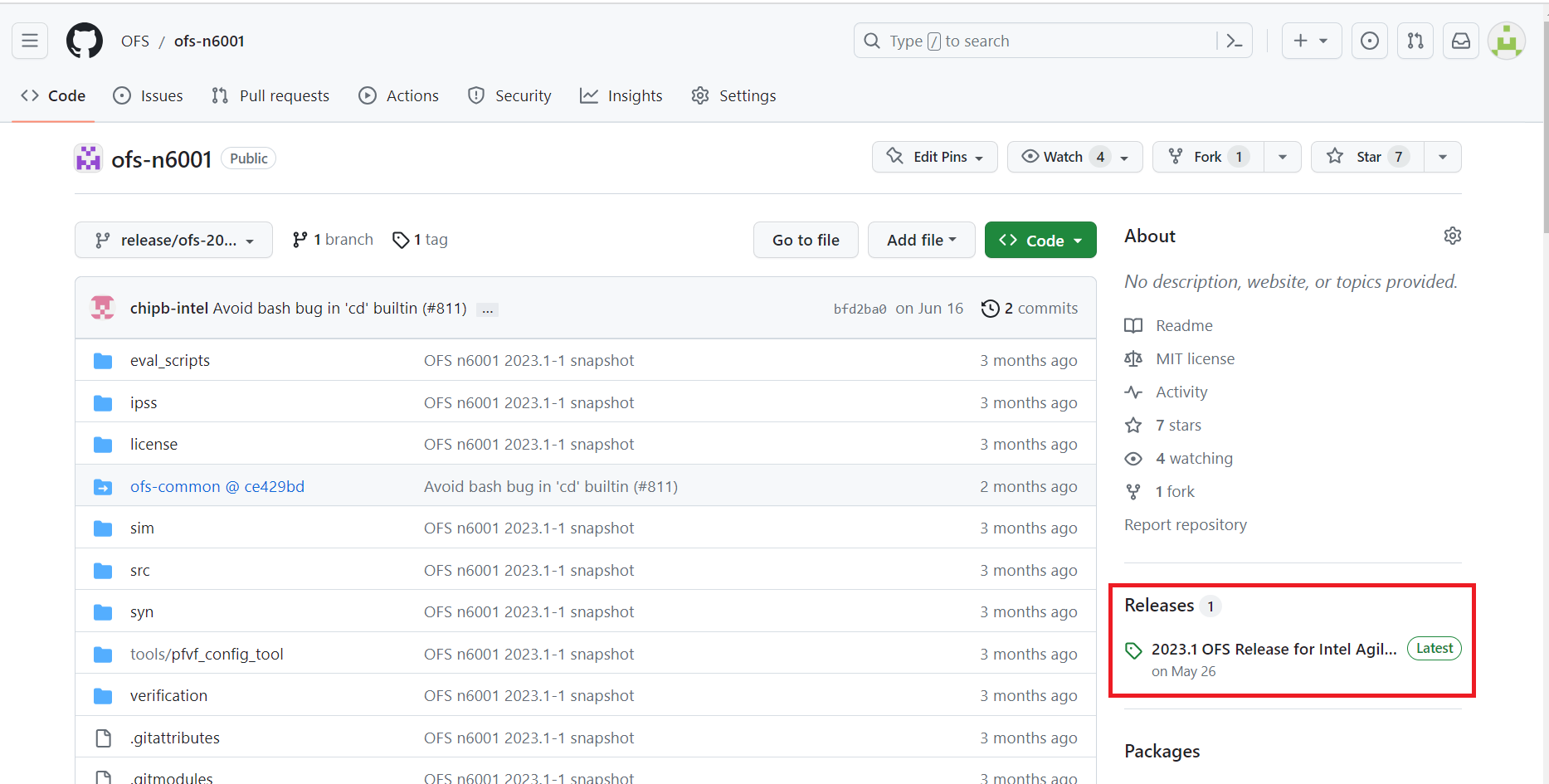 By scrolling to the end of the release page, you will find assets attached to the release that you can leverage for quick evaluation of OFS, such as FPGA binary files, POF and SOF as well as a sample AFU and a partial reconfiguration directory for building your own custom workload.