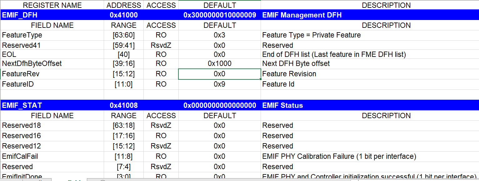 Excel sheet snapshot example below for EMIF_CSR.xls located at /ipss/mem/rtl/adp