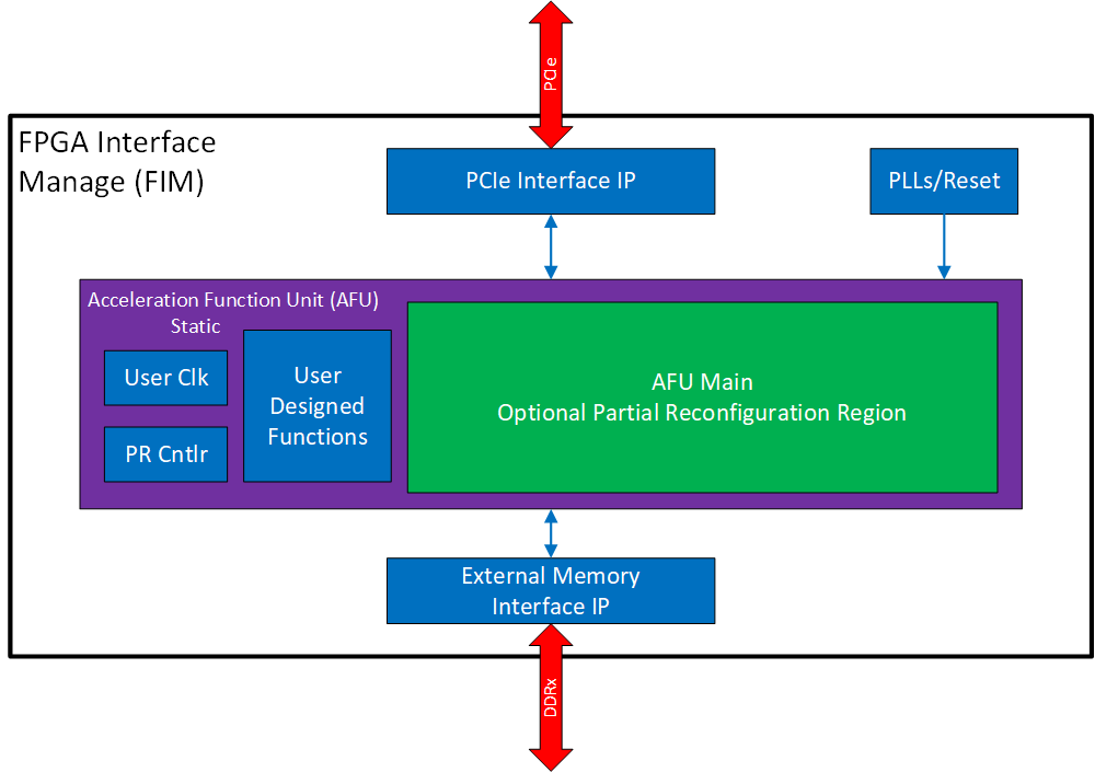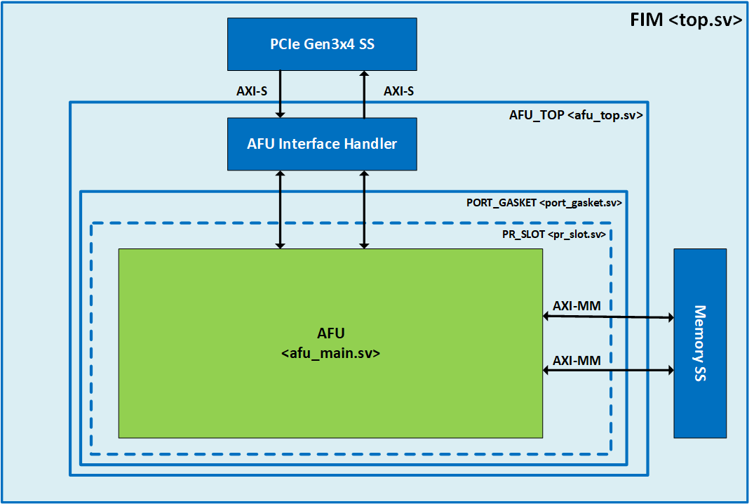 - Optional Platform Interface Manager (PIM) which is a set of SystemVerilog shims and scripts for flexible FIM to AFU interfacing