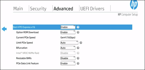 - BIOS Setting: PCIe Slot Setting (Everything default)