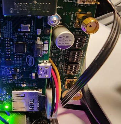 Locate the J10 Micro-USB port on the fseries-dk. Connect a Micro-USB to USB-A cable between the J10 port and the workstation that has Quartus Prime Pro tools installed.