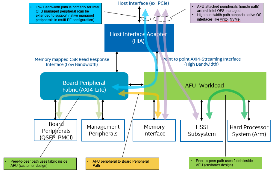 - Board Peripheral Fabric for master to slave CSR accesses from Host or AFU