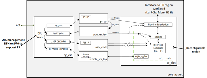 Partial Reconfiguration | PR | The ability to dynamically reconfigure a portion of an FPGA while the remaining FPGA design continues to function. For OFS designs, the PR region is referred to as the pr_slot. |