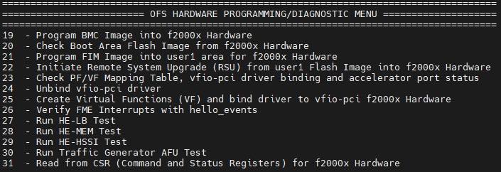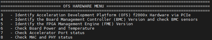 3.1.6 OFS HARDWARE AFU TESTING MENU